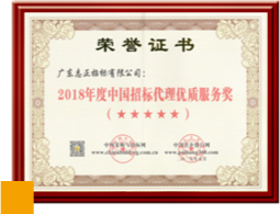 2018 年度中國招標(biāo)代理優(yōu)質(zhì)服務(wù)獎(五星)