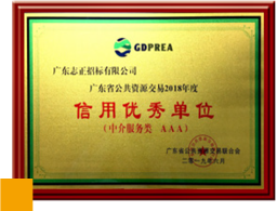 廣東省公共資源交易 2018 年度信用優(yōu)秀單位(AAA 級)